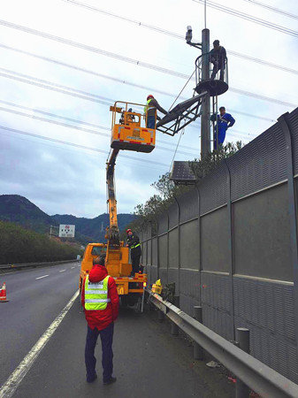 近日,集團(tuán)工程養(yǎng)護(hù)部機(jī)電設(shè)備維養(yǎng)中心組織施工單位,頂著寒風(fēng)冷雨對沿線有裂痕破損的云臺太陽能板進(jìn)行了拆除更換,為即將到來的春運(yùn)工作打下堅(jiān)實(shí)的基礎(chǔ)。 集團(tuán)路段共有36個監(jiān)控云臺,它們在提高高速公路管理和服務(wù)水平上起著重要作用,當(dāng)發(fā)生交通異常時(shí),能及時(shí)確定事故并實(shí)時(shí)發(fā)布相應(yīng)的誘導(dǎo)和救援信息,保障道路暢通,減少財(cái)產(chǎn)損失。維養(yǎng)中心在之前一次摸底排查中發(fā)現(xiàn)沿線有10處云臺太陽能板由于年久老化,面板晶體出現(xiàn)不同程度開裂破損,嚴(yán)重影響太陽能供電效果,導(dǎo)致監(jiān)控設(shè)備無法有效運(yùn)轉(zhuǎn)。