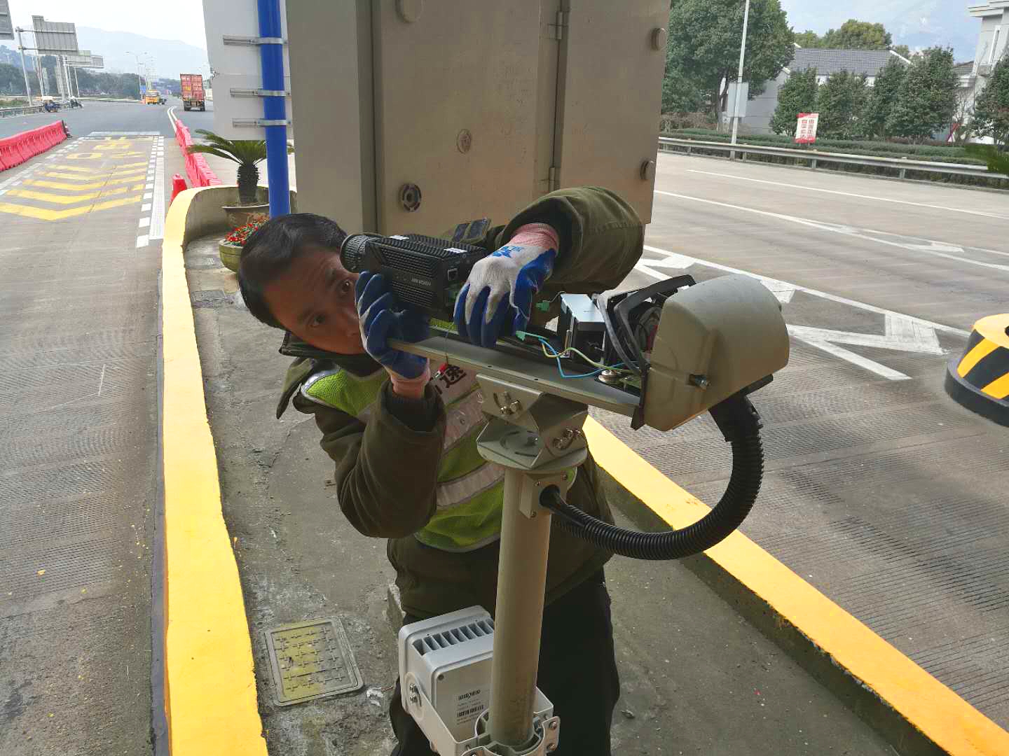 圖為廠家人員在調(diào)試設(shè)備 公司路段人工車道車牌抓拍識(shí)別系統(tǒng)已于去年全部更新?lián)Q代,而ETC車道因當(dāng)時(shí)還尚能滿足收費(fèi)條件沒有更換。但隨著收費(fèi)系統(tǒng)不斷升級(jí),當(dāng)切換人工收費(fèi),要求錄入全部車牌時(shí)不僅效率低,而且容易出錯(cuò),嚴(yán)重影響了收費(fèi)操作速度。 公司工程養(yǎng)護(hù)部機(jī)電設(shè)備維養(yǎng)中心發(fā)現(xiàn)這一問題后,立刻聯(lián)系了車牌抓拍設(shè)備廠家,并在設(shè)備到位當(dāng)天,中心隊(duì)員就著手安裝和接線工作,方便廠家人員后續(xù)調(diào)試,以便盡快啟用自動(dòng)車牌抓拍系統(tǒng)。因調(diào)試過程涉及到與軟件方配合,中心隊(duì)員便一起協(xié)助廠家溝通聯(lián)系,加班加點(diǎn)已成常態(tài)。經(jīng)過雙方近十天努力,一套集車牌抓拍、高清視頻于一體的監(jiān)控設(shè)備佇立在車道安全島上。 自動(dòng)車牌抓拍系統(tǒng)的成功安裝,不僅提升了收費(fèi)操作速度,還可以隨時(shí)掌握每輛車經(jīng)過的點(diǎn)位及高清圖片,減少車輛違法行為,在打擊車輛偷逃通行費(fèi)等方面也將起到積極作用。 項(xiàng)寅曉