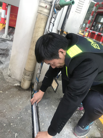 圖為工作人員自查崗亭報警器 此外,工作人員對收費區(qū)域內(nèi)的消防、交通、崗亭設施設備,以及票證、通行費等安全情況進行了一次自查,確保安全用電,做好消防和防盜措施,并對當班收費員進行現(xiàn)場稽查,檢查大家在當班期間的崗亭環(huán)境是否衛(wèi)生,臺面是否整齊,著裝是否統(tǒng)一,有無佩戴上崗證,儀表舉止是否規(guī)范,文明用語是否親切,以及抽屜大額現(xiàn)金有沒按規(guī)定放入保險箱等。大家的合力檢查和相互配合,為春運安全暢通、防寒防凍工作提供了強有力的保障。 陳瑩
