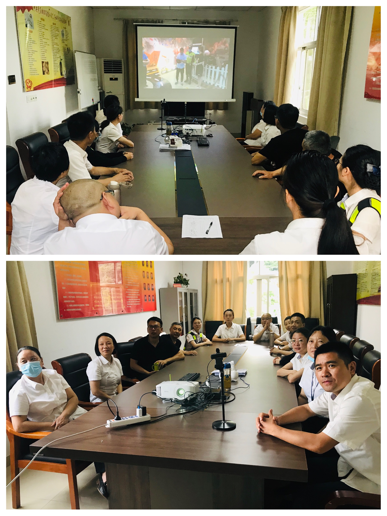 圖為收看《臺州市公共安全教育館安全體驗線上直播活動暨安全生產公開課》 活動期間,該所發動全員開展“安全隱患隨手拍”、集中組織收看《臺州市公共安全教育館安全體驗線上直播活動暨安全生產公開課》、通過微信平臺,每周在工作群發送一條“安全短語”等活動,營造出濃厚的“安全生產月”活動氛圍。并利用電子情報板滾動播放“安全生產月”活動主題和宣傳標語、懸掛安全宣傳標語橫幅、張貼宣傳畫、發動全所員工參加“全國安全知識網絡競賽”微信有獎競答活動,有效提高員工安全生產責任和意識。