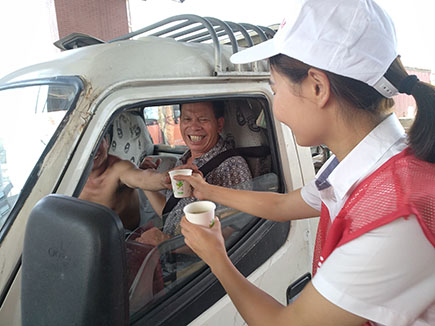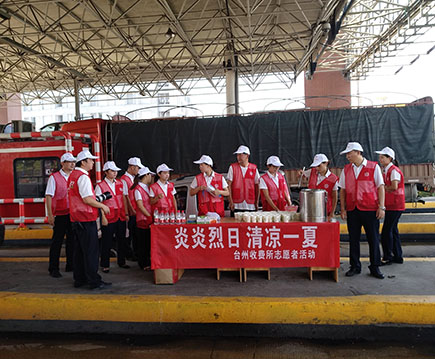圖為志愿者合影 志愿者們兵分三路,一路在外廣場對滯留車輛進行文明勸導(dǎo),一路拿著垃圾袋和撿拾工具沿收費區(qū)域收集垃圾,另一路則在安全島上向過往的司乘人員宣傳夏日行車安全知識,同時提供礦泉水、冰鎮(zhèn)綠豆湯,發(fā)放清涼油、風油精等防暑降溫用品,不僅為司乘人員提供熱情周到的服務(wù),還讓過往司乘人員在炎炎夏日真切感受到一絲清涼和一份關(guān)心。 該所通過開展一系列的志愿活動,促進了收費員與司乘人員之間的溝通交流,拉近了彼此之間的距離,贏得了過往司乘人員的好評,塑造了良好的窗口形象,為臺州市創(chuàng)建全國文明城市貢獻力量。 鄭瑛芝