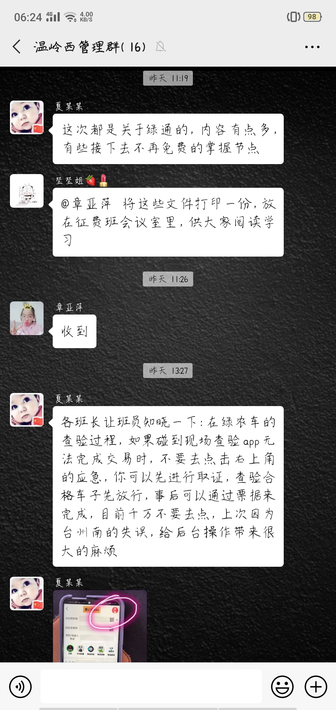 圖為需要學習的各個文件內(nèi)容 培訓(xùn)采取集中學習與線上學習相結(jié)合,理論知識與現(xiàn)場操作相結(jié)合、互動交流與相互提問相結(jié)合的方式開展,通過釘釘、微信等學習平臺,每天,各班班長組織班員開展崗前五分鐘提醒、崗后班組集中學,確保每一名收費人員能夠熟練掌握新收費系統(tǒng)的各項操作流程。此外,各班班長及時梳理匯總收費員們在實際操作中遇到的問題,并上傳至管理群,群中全員參與,一起討論學習。遇到無法解決的問題時,所負責人第一時間與上級主管部門溝通,以尋求最佳解決方案,并發(fā)布到群里,明確操作流程和統(tǒng)一相關(guān)政策解釋工作。 本次培訓(xùn)不僅使全所每一位員工鞏固了前期業(yè)務(wù)知識,也更加深入掌握了收費新系統(tǒng)的操作流程以及新收費政策,為恢復(fù)正常收費穩(wěn)步進行奠定了堅實的基礎(chǔ)。 鄭霞霞