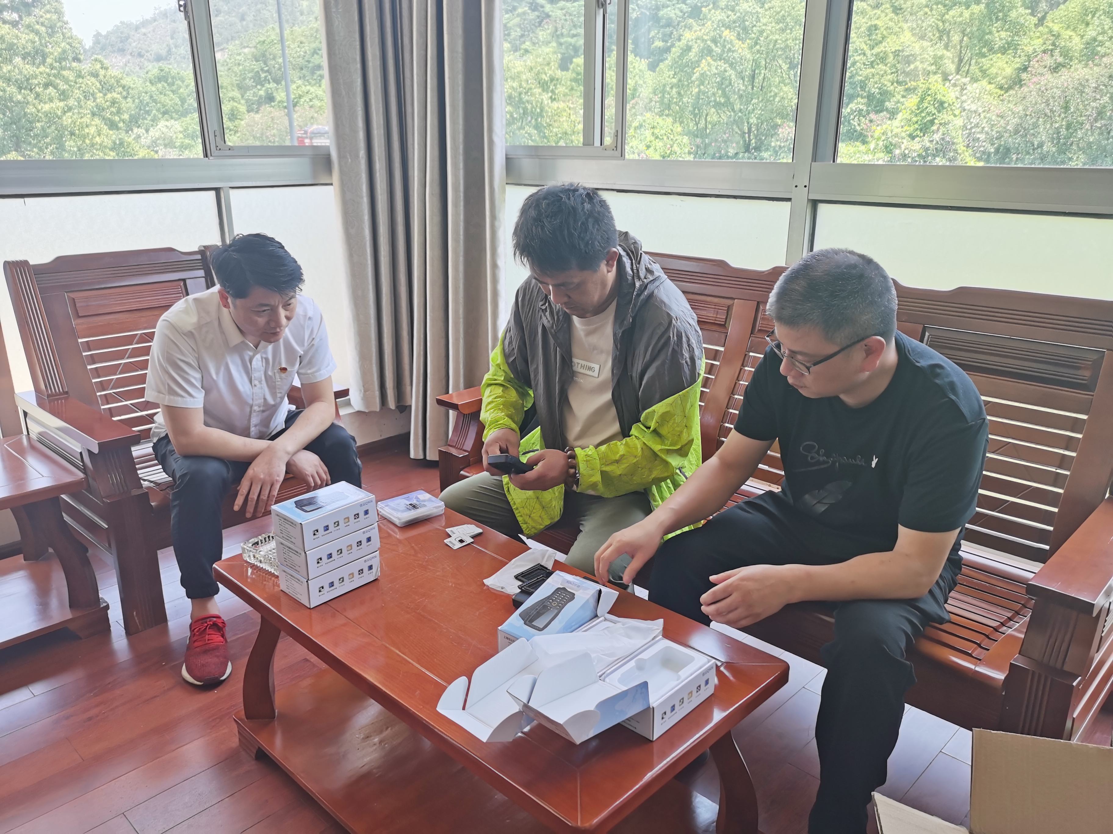 圖為廠家人員前來安裝對講機 當日下午,為了讓執勤隊員快速熟悉手機對講機的使用和管理,切實發揮對講機在實際工作中的作用,兩隧道所立即組織當班隊員集中培訓。大家認真地學習對講機的操作規范,相互研討對講機的特點,一邊操作示范,一邊了解屬性,以便更快掌握。