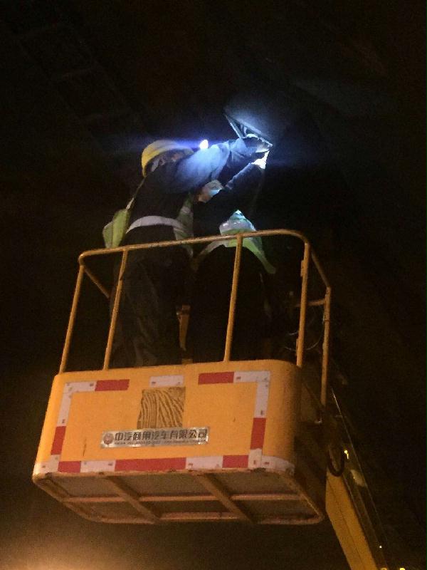 圖為進隧道進行搶修 找到無圖像的“癥狀”之后,大溪嶺隧道所電工與維養中心的弟兄“對癥下藥”,在大家的共同努力下,10:49完成攝像頭的搶修工作,寧向隧道恢復正常通車。 孫鵬