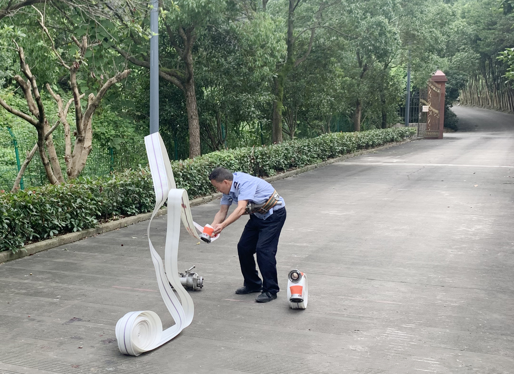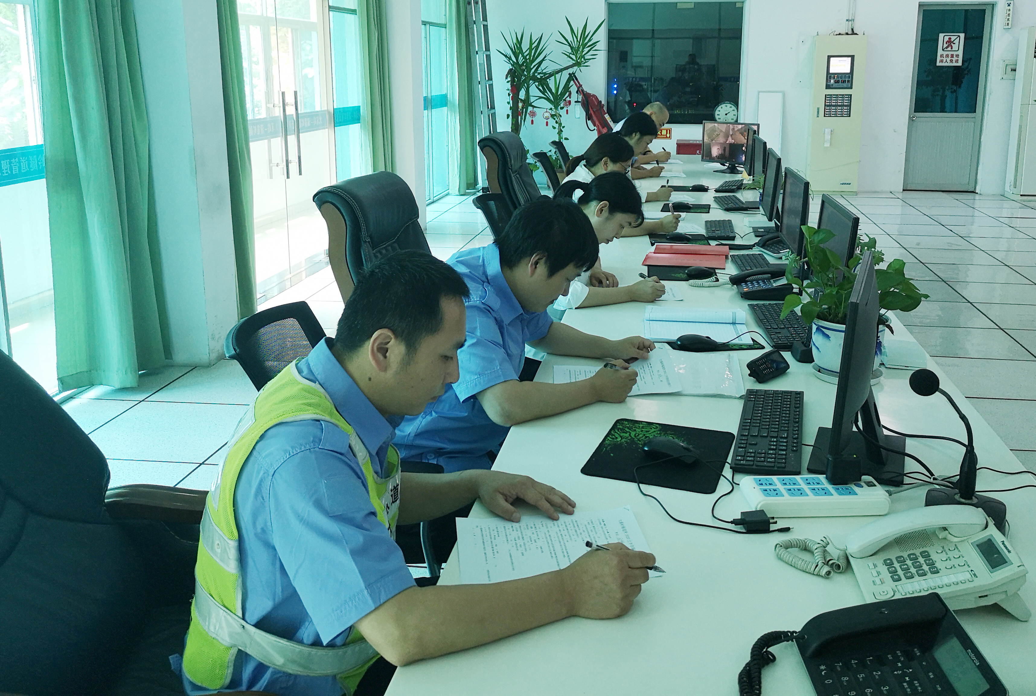 此次測試題庫內容包括中控、電工、安保等專業知識,分三批次進行。隊員在做完隧道業務知識測試后,繼續各崗位“模擬操作”測試。中控測試模擬隧道(寧向或溫向)發生火災、追尾、拋錨等事故,按照預案進行操作,以此檢測中控員工作中熟悉事故處置流程的程度和中控設備操作使用的能力;電工根據高桿燈升降電路控制原理圖、以此檢測電工專業水平,增加電工的基礎知識,提高維修能力;安保測試消防水帶的兩帶連接,進一步提高隊伍執勤訓練水平和滅火救援能力。