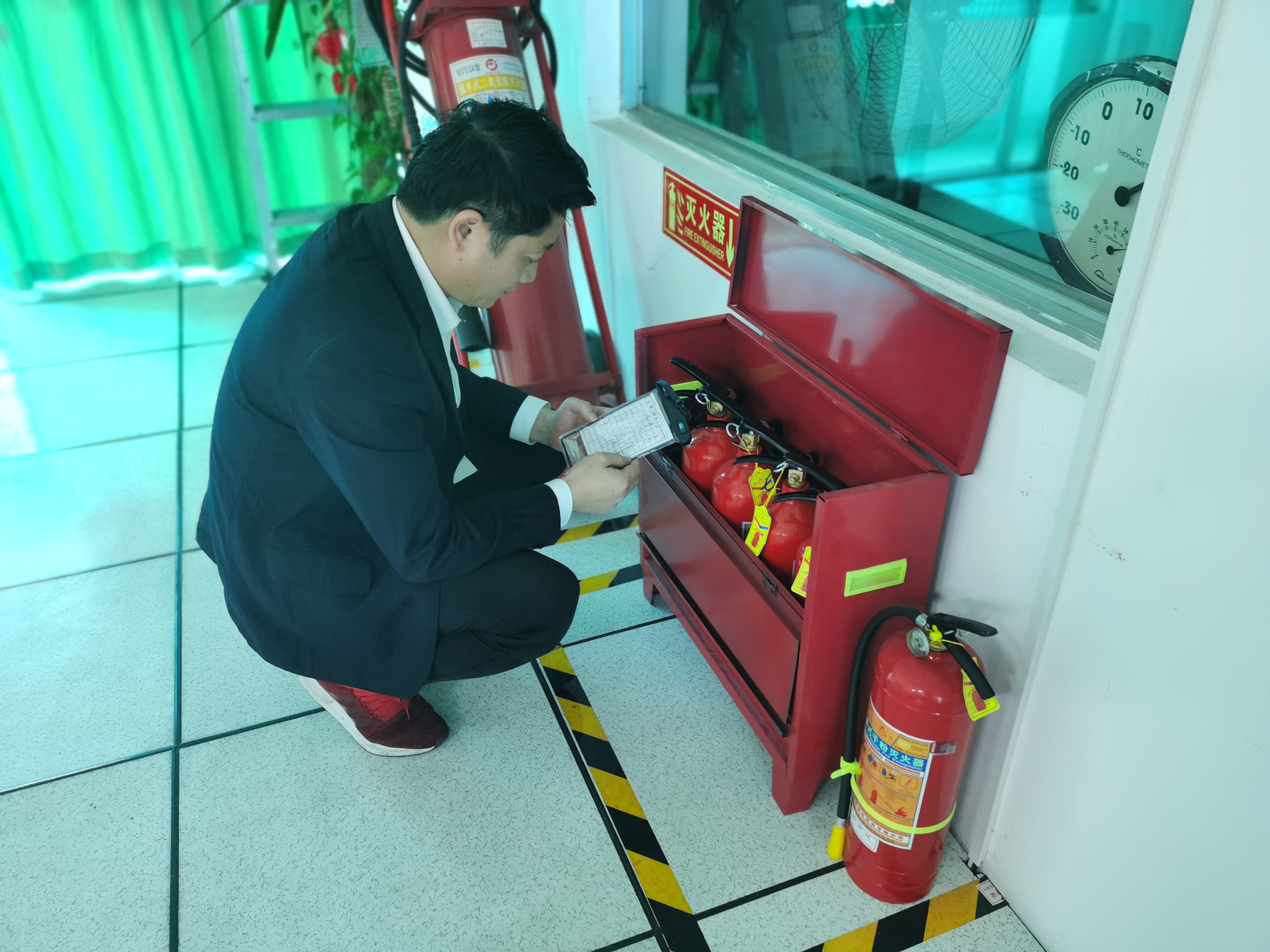 圖為檢查消防設施