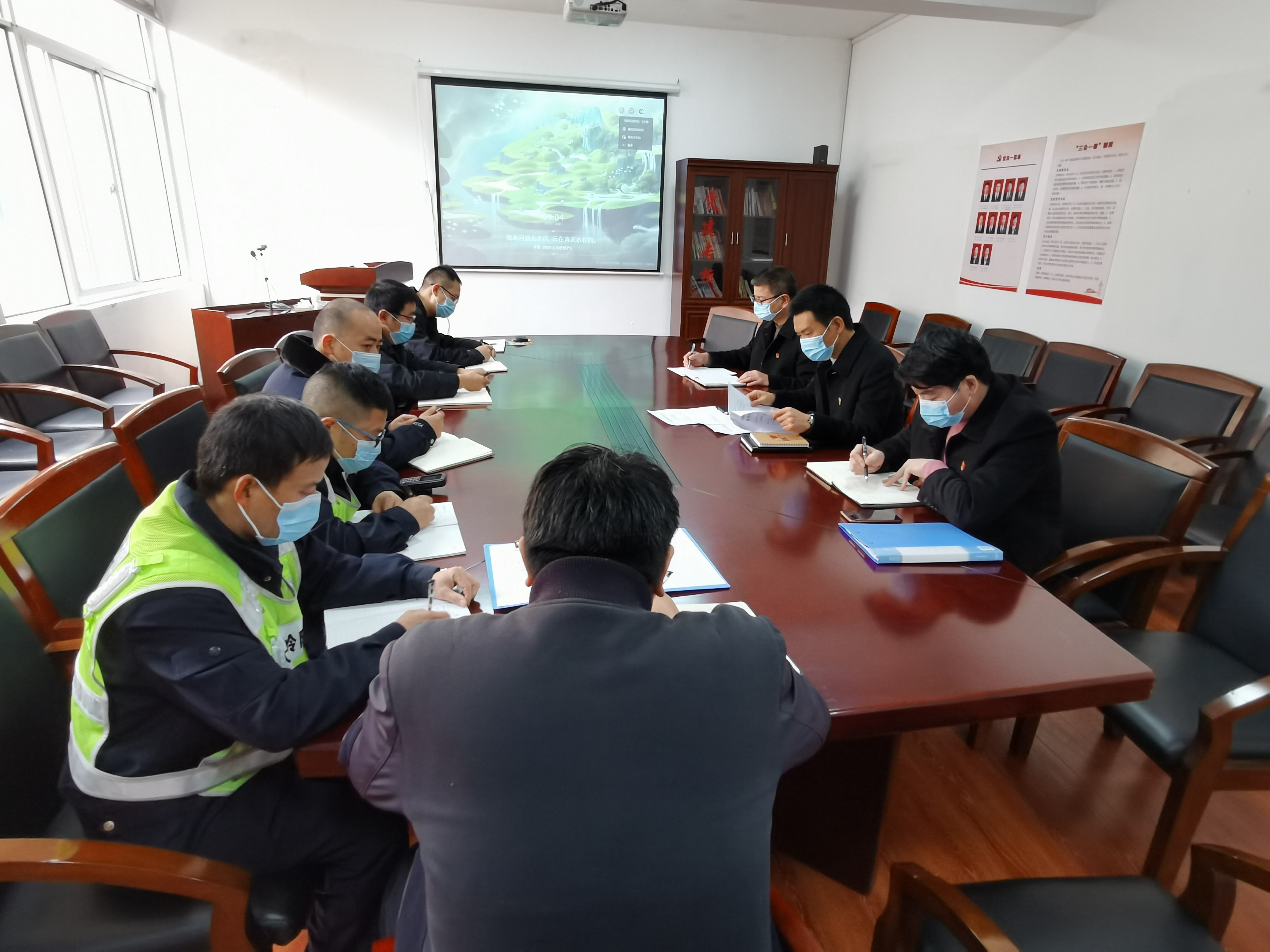 (圖為春運工作會議 ) 根據(jù)公司2021年春運工作方案,隧道所成立春運工作小組,結(jié)合隧道管理實際工作,把疫情防控放在春運工作的首位,員工上班時要求戴口罩、測溫、出示健康碼。嚴(yán)格守好管理所的“小門”,每位出警人員必須做好防護,口罩、護目鏡、手套全副武裝,并和司乘人員保持安全距離,出警回來要消毒洗手。平時要增強所內(nèi)的衛(wèi)生措施,食堂就餐時采取錯峰用餐,分餐,減少人員聚集;每天對各辦公室、公共區(qū)域、角落、配電房等進行消毒;隧道所員工盡量減少出行,不跨省、不返鄉(xiāng)、就地就近過節(jié),并與每位員工簽訂“關(guān)于疫情防控工作‘十嚴(yán)禁’規(guī)定的告知書”,加強春運期間的值班工作,進一步落實安全生產(chǎn)的“一崗雙責(zé)”,并與隊長簽訂責(zé)任狀。