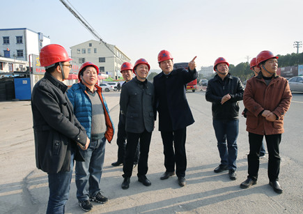 圖為總經(jīng)理張建平在8#立交工地聽(tīng)取工程介紹
