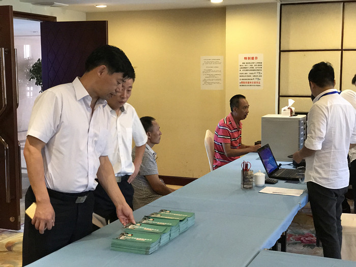 圖為集團副總經(jīng)理陳保衛(wèi)正在檢查收購點宣傳資料