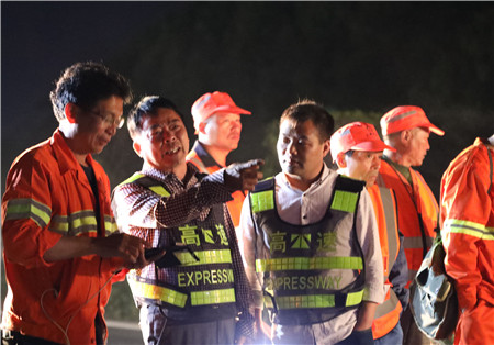 反復溝通,施工保質保進度。要在車流量極大的主干線上夜間順利施工,不僅對工程質量、進度負責,更要對安全保暢負責,不能有半點疏忽,不允許絲毫麻痹,而且涉及面極廣。不僅涉及工程部與施工監理單位,更涉及到高速交警、路政及運營管理等多個部門,前期工程部協交警、營運部、監理、施工等各相關單位就施工方案反復論證,一次次的討論與交流,計劃改了又改,從提前發布公告到路口設立標志,從預警車輛安排到分流時間節點,從搶險預案到應急小分隊建立,路面的反復測量,綠化養護的同期推進.....千頭萬緒,在于每一個細節的反復論證。一直到11號下午,確定了最合理有效的交通組織方案,施工前的安全和技術方面有了最后的交底,器械設備、材料、人員班組配備等一一清點得到最終確認。