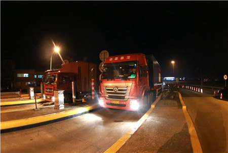 臺州南、溫嶺西收費所,分流9點開始,由于夜間通行貨車居多,每輛需計重收費,且夾雜綠農車,情況復雜,分流1個小時后出口車道已排成車燈長龍,壓力巨大。“路口協警一定要守住第一道防線,不能讓任何車輛進入!”富有經驗的所長王益民已在車道上與交通協管員一起指揮疏導交通了。從晚上10點到凌晨6點,持續奮戰8個小時,在有限的具有稱重能力車道的情況下,臺州南、溫嶺西共完成了5千多輛車的收費工作,流量相比平時增加一倍。