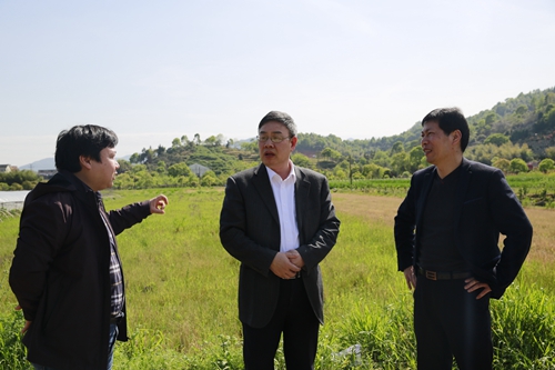 圖為公司領導陳文波在水花村考察停車區地塊
