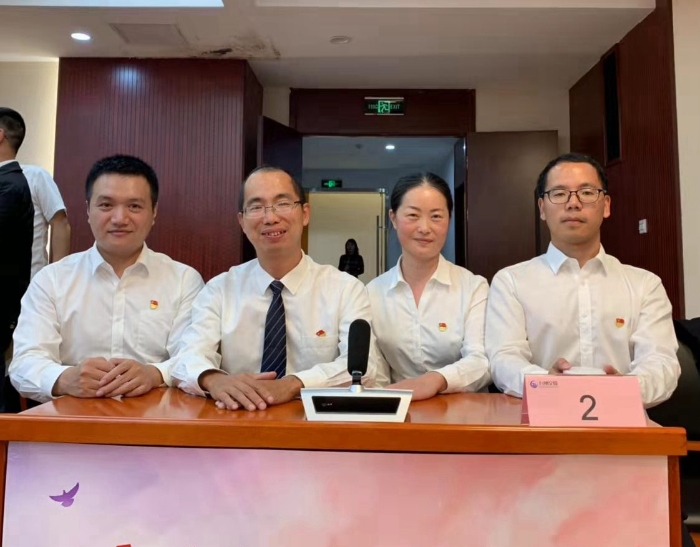 圖為參賽人員合影 本次活動共有9支代表隊、36名選手參加,知識競賽主要以黨的十九大精神、習近平總書記系列重要講話精神、2019年新施行的黨章黨規、黨員應知應會等為內容,采取現場知識擂臺賽的形式開展競賽。此次競賽題量信息大、出題形式活,對參賽的選手來說也是一次意義非凡的考驗。