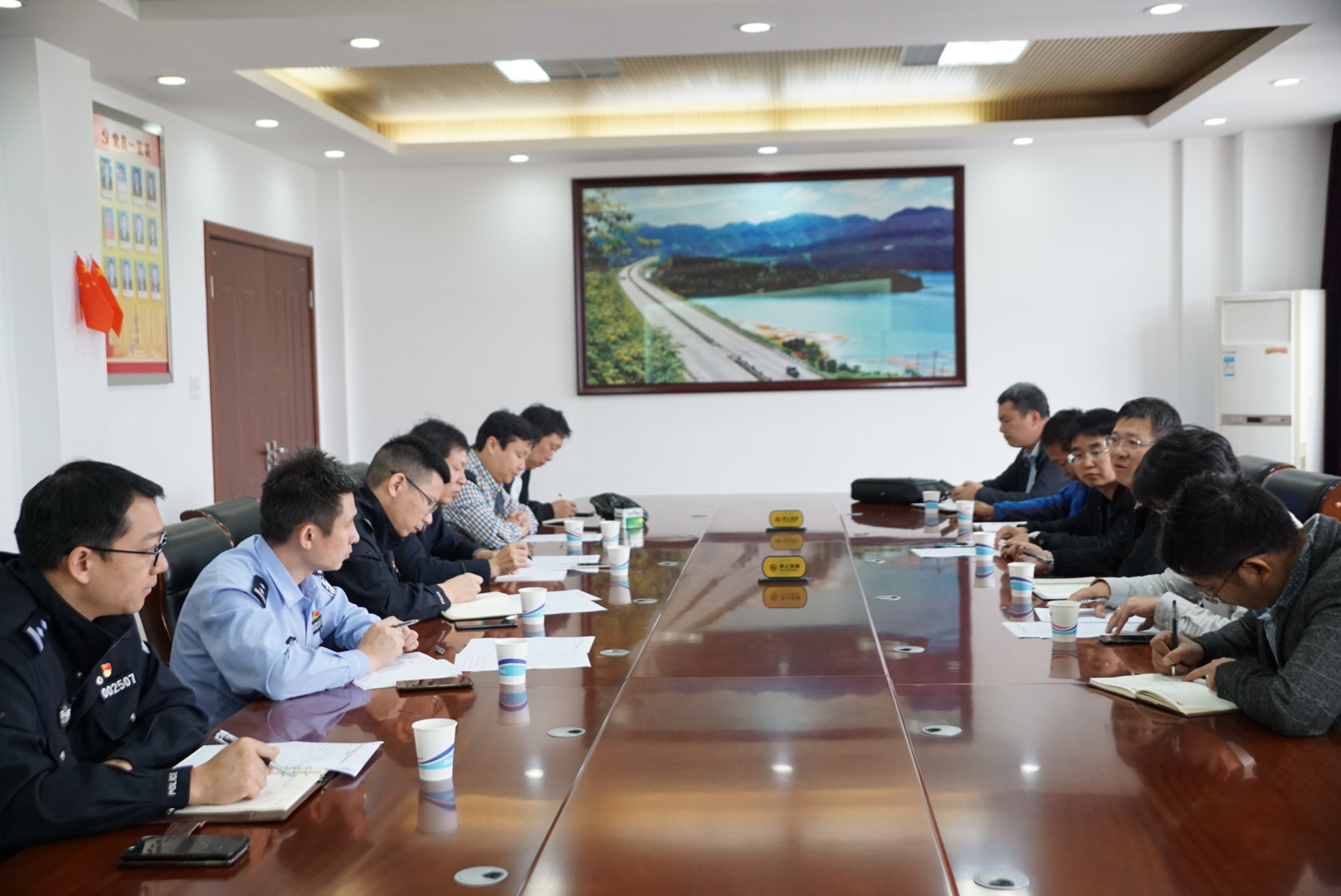 集團(tuán)聯(lián)合高速交警、路政檢查第一階段斷流施工情況 11月7日上午,集團(tuán)聯(lián)合高速交警、高速路政等單位實地踏勘了集團(tuán)沿線斷流施工現(xiàn)場,檢查第一階段施工進(jìn)展情況及現(xiàn)場交通管控點、收費站分流點交通流等情況,集團(tuán)總工程師江輝、高速交警臺州支隊副支隊長沈汝寬、高速路政領(lǐng)導(dǎo)參加檢查。