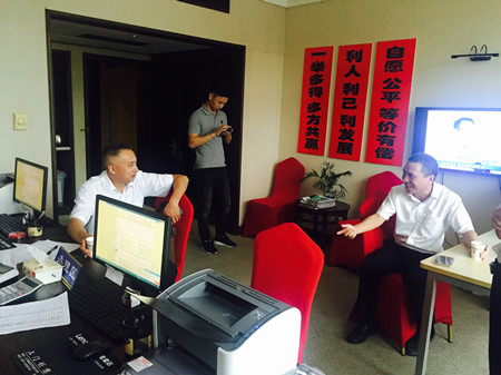 圖為集團副董事長、總經理張建平在天臺收購點詳細詢問收購工作具體開展情況 張建平向各地方政府前期對公司股權收購工作的支持表示感謝,他介紹了當地臺州高速股權收購進展情況,同時闡明收購工作中存在的困難,需要地方政府繼續對我們的工作給予支持和幫助。三地政府都表示一定會全力支持這項工作。仙居縣分管公司股權收購的常務副縣長說,“放心吧,我們一起想辦法,先從持股較多的法人股入手,再化大力氣做小股東工作,一定會圓滿完成任務。” 張建平一行先后來到三地股權收購點,向收購一線的工作人員表示親切的問候。張建平對大家的工作給予肯定,感謝所有人勤勤懇懇,無私付出,并希望大家繼續努力,共同實現目標。工作人員詳細介紹了日常具體工作方法,他們緊跟公司股權收購總體布局,并結合當地特殊情況,因地制宜,有序靈活地開展股權收購工作。