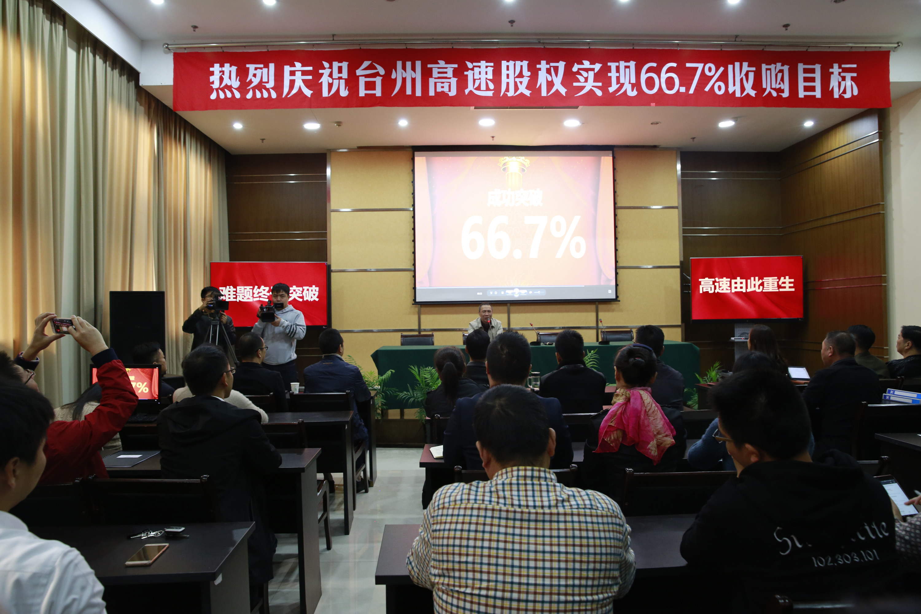 臺州高速股權集中和優化工作領導小組辦公室主任、臺州高速集團總經理張建平鄭重地宣布:“至此,全市共完成臺州高速股權轉讓6947萬股,臺州市屬國企及黃巖財務開發公司合計持股數1.441億股,完成了66.7%的預定收購目標。”