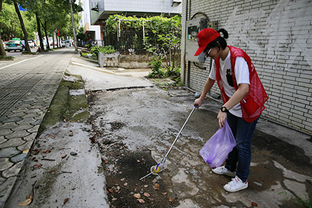 上圖為志愿者在赤山路撿拾垃圾