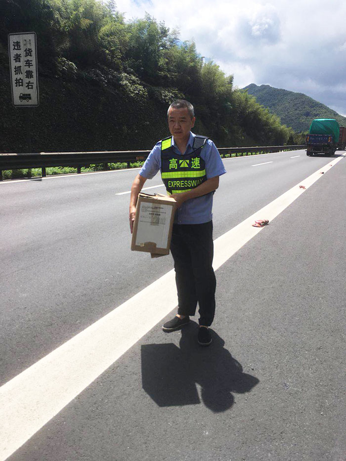 快遞車高速路上不慎丟包裹 值勤隊多方聯(lián)系歸還原主
