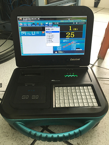 圖為安裝系統后的“便攜式收費機” 據了解,這套“便攜式收費機”結構緊湊、體積小、強度高,整機(含電池)重量不到8KG,一次充電可使用4小時以上,不僅內置了省高速公路專用收費鍵盤和非接觸式IC卡讀卡器,還配置了9針頭點陣式票據打印機,無需連接任何的外部設備,即可完成簡單收費流程,并且還可以通過無線或有線網絡及時向收費站上傳收費數據,被號稱是一款“提之即來、來之即收”的收費“神器”。 “便攜式收費機投入后,可實現一條車道對多輛車同時收費,在一定程度上避免了堵車現象的發生,提高收費站的工作效率。”維養中心負責人葉俊自信地說。 項寅曉