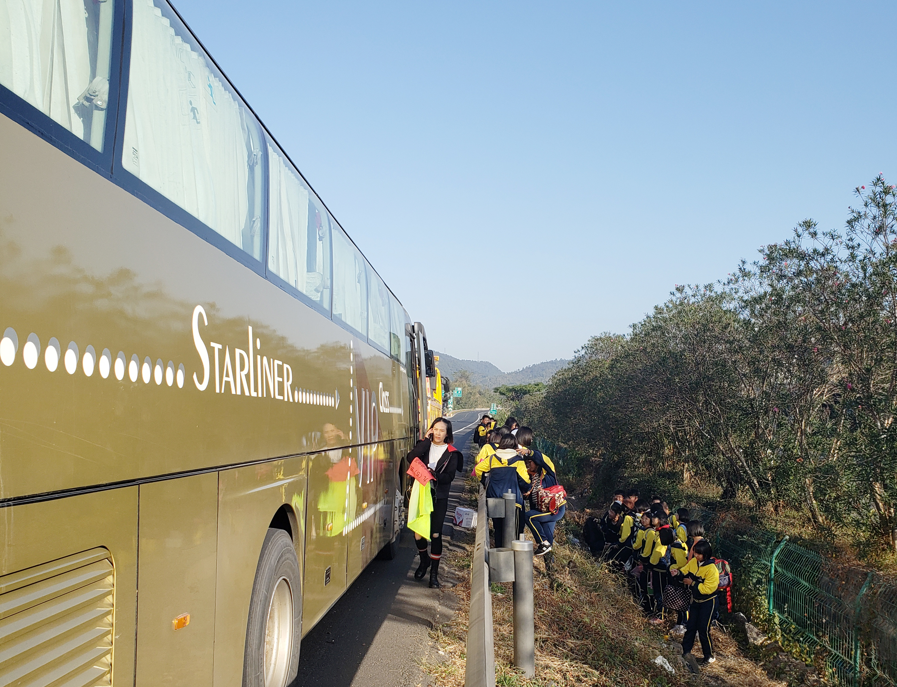 11月15日上午7點30分,一輛大客車在距離臨海南收費所寧向5公里處拋錨,需要救援。 12分鐘后,施救中心人員趕到現場,這是一輛載滿學生的大巴車,拋錨在硬路肩。大巴車司機告訴救援人員,這是浙江省某實驗中學的學生,在去往臨海研學的過程中,車輛忽然出現故障,車上有近三十名學生和兩個老師。
