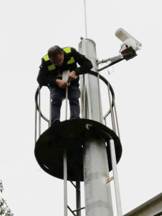 圖為搶修人員在安裝無線網(wǎng)橋 面對難題,中心隊員并沒有退縮,而是積極面對、集思廣義,想到了利用無線網(wǎng)橋點對點的橋接通迅功能,將斷點處的攝像機視頻信號通過網(wǎng)橋無線連接,傳輸?shù)脚R近攝像機光端機上,隨后再一起將信號傳輸?shù)奖O(jiān)控中心,實現(xiàn)網(wǎng)絡(luò)和通迅共享的解決方案。這既可以避免因封道施工造成車輛擁堵,又可以為公司節(jié)省近萬元維修費用。然而在實際操作中,還要解決另外一個棘手的問題,就是無線網(wǎng)橋供電電流和電壓無法直接從攝像機電瓶中獲取,但這些同樣難不到中心隊員們,他們又想到了之前路面拆卸下來逆變器,利用它的逆變原理成功解決網(wǎng)橋供電問題。 說降就降的氣溫,加上路面飛馳而過的車輛帶來的陣陣寒風(fēng),吹得隊員瑟瑟發(fā)抖。但他們都知道要是晚一天修復(fù)網(wǎng)絡(luò),路面就會多一份隱患。在中心負(fù)責(zé)人的帶領(lǐng)下,搶修人員按照之前設(shè)定的方案,一人負(fù)責(zé)云臺上面的無線網(wǎng)橋安裝,另外兩人負(fù)責(zé)地面逆變器及網(wǎng)絡(luò)的安裝。由于大家分工明確、配合默契,不到半天時間,路面兩處斷點視頻信息再次出現(xiàn)在了監(jiān)控中心的大屏上。 項寅曉