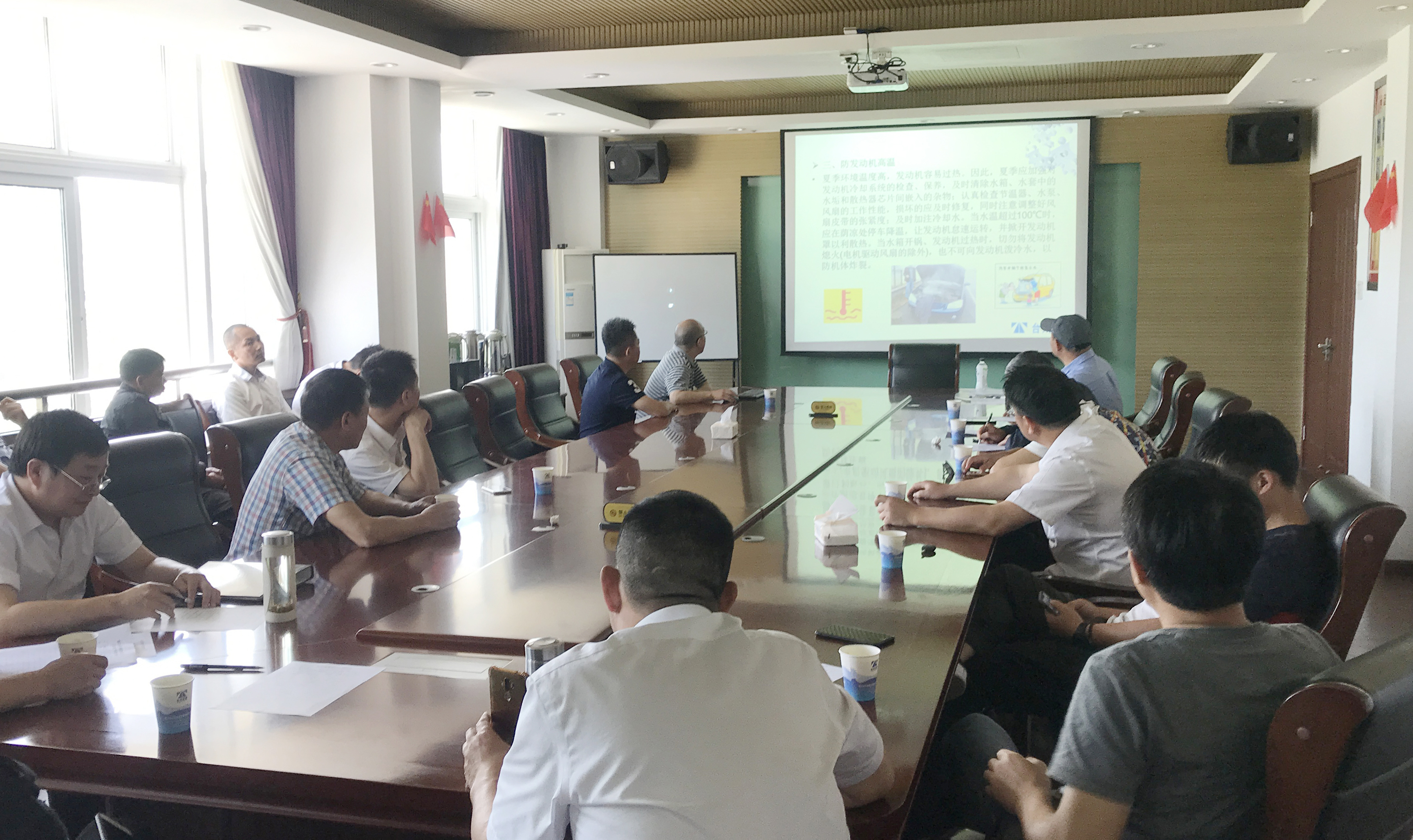 圖為培訓(xùn)現(xiàn)場 會議指出,夏季是公司全年安全生產(chǎn)工作的重點、難點,為確保全公司安全生產(chǎn)形勢的穩(wěn)定,要提高駕駛員遵守交通規(guī)則和安全生產(chǎn)操作流程的自覺性,強化員工自我保護意識,杜絕違章,預(yù)防事故,提高全體駕駛員的安全防范意識,確保夏季行車安全! 胡正熙