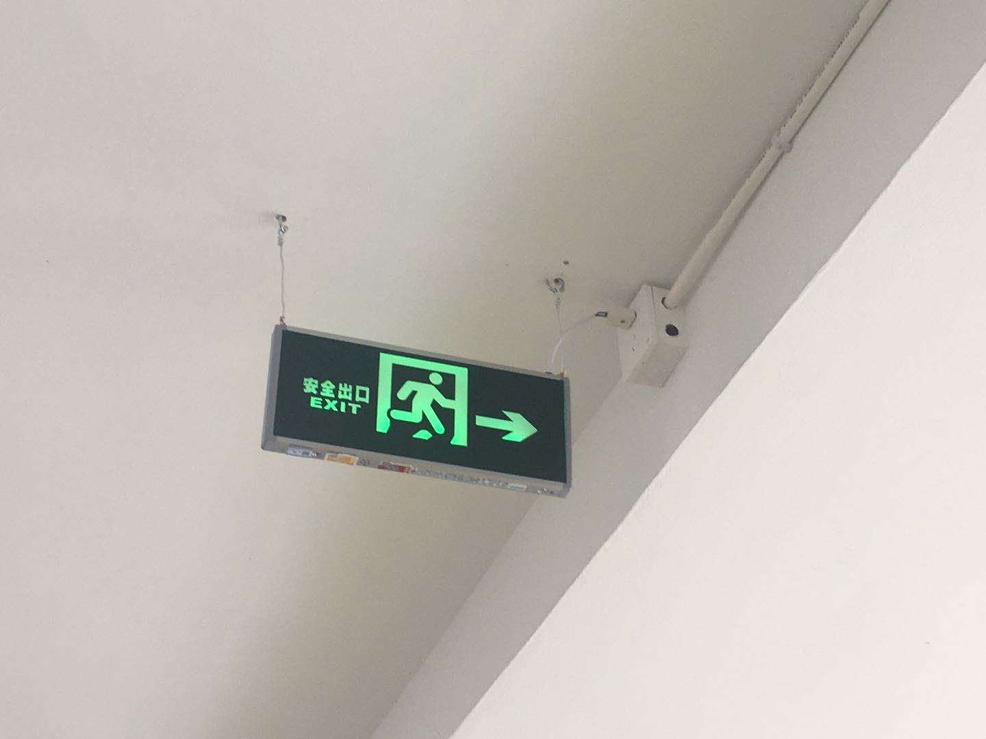 圖為安裝好的逃生指示牌 “之前收費站一停電,大樓就比較昏暗,很容易踩空樓梯,現(xiàn)在有這些應急燈,心里踏實多了。”臺州南收費所一位監(jiān)控員望著這些新裝的燈具放心地說道。 項寅曉