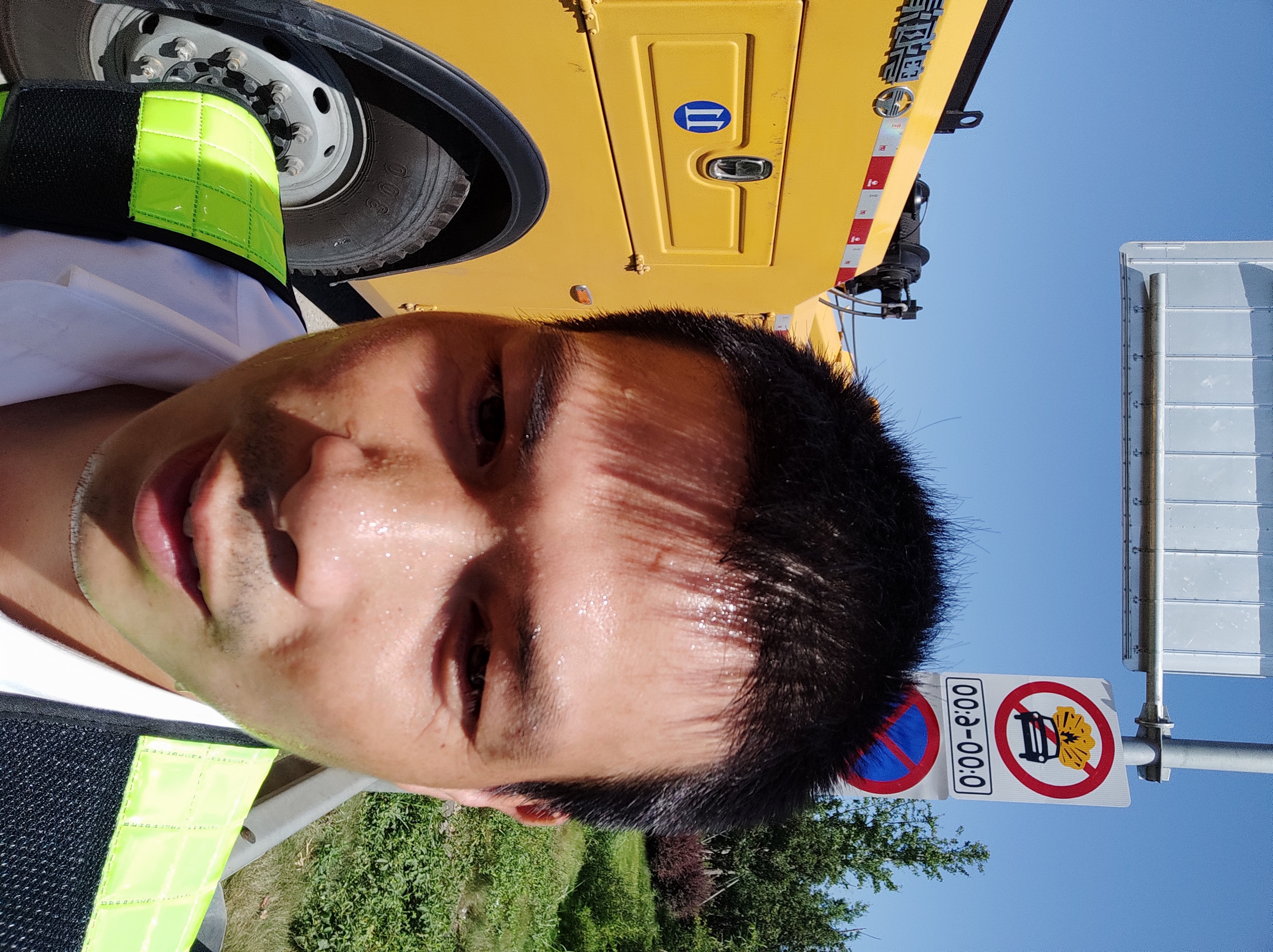 “這地面溫度已經超過70℃了吧,滾釘燙!”為了擺正車叉位置,阮文標頂著酷暑爬到車底調整位置,爬出來的時候,手隔著手套都被燙紅了。