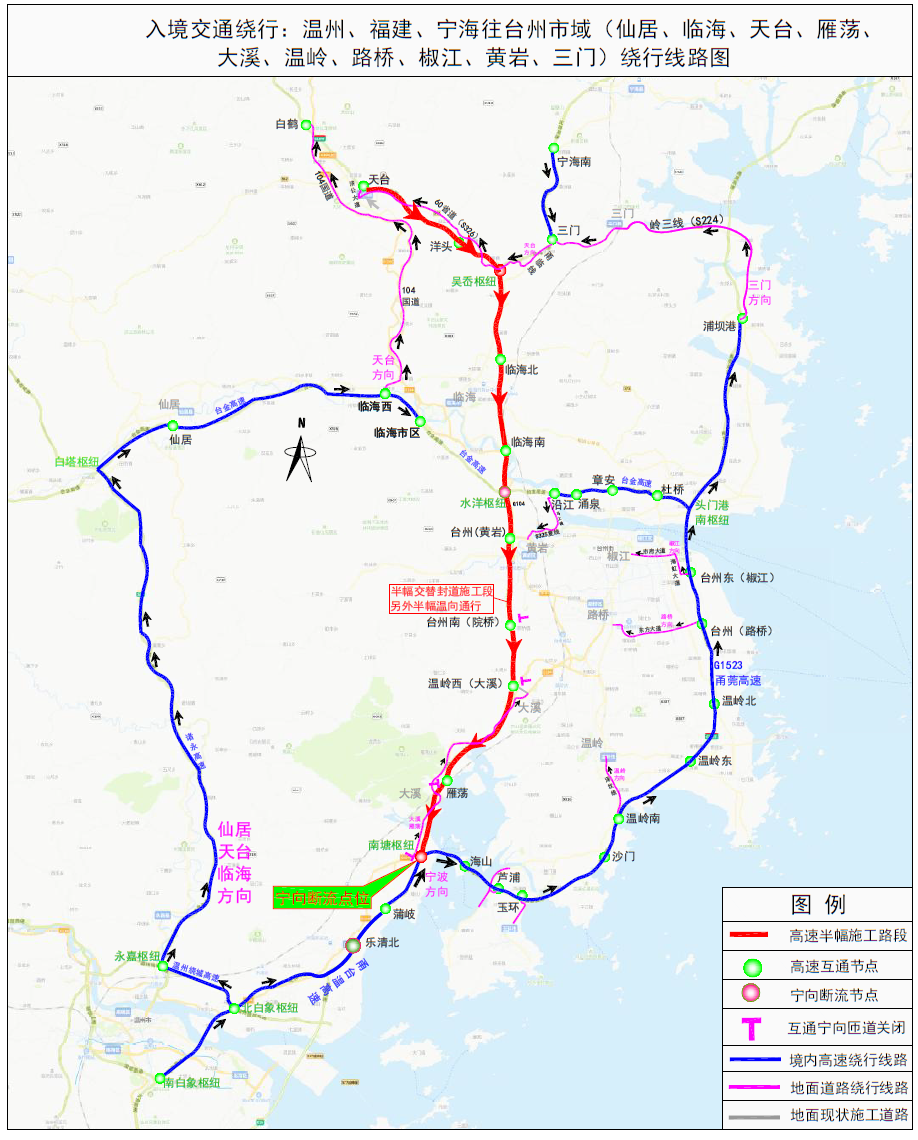 屆時(shí)雁蕩、溫嶺西(大溪)、臺(tái)州南(院橋)、臺(tái)州(黃巖)寧波方向關(guān)閉14天,臨海南、臨海北互通寧波方向進(jìn)口關(guān)閉7天,洋頭互通上虞方向進(jìn)口關(guān)閉7天,所有車(chē)輛禁止上高速;溫州方向進(jìn)出口將根據(jù)改道需要臨時(shí)關(guān)閉。