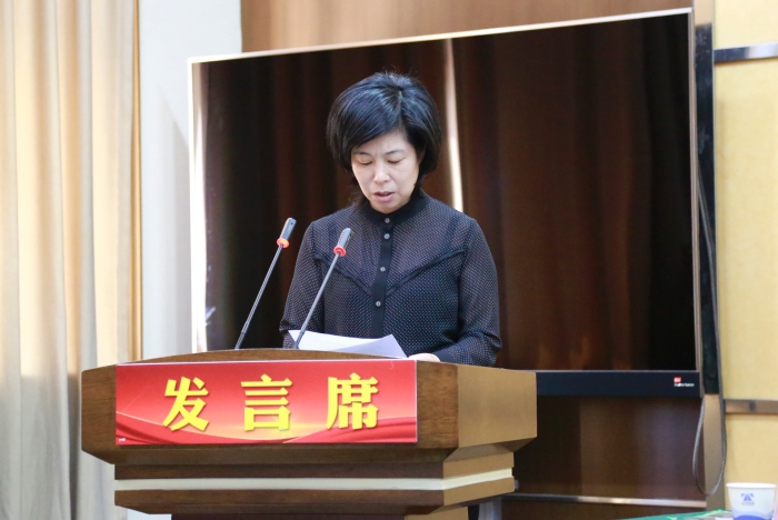 圖為王慧作第七屆工會(huì)經(jīng)費(fèi)審查委員會(huì)工作報(bào)告