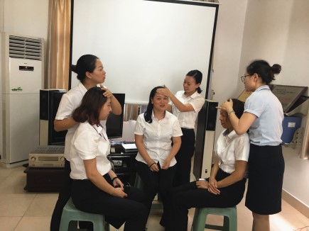 課堂中,一位老師為大家講解了“什么是頸椎病”、“頸椎的重要性”、“頸椎病的危害”等有關(guān)健康知識,另一位老師邀請現(xiàn)場人員做示范,用專業(yè)手法演示如何緩解頸椎亞健康狀態(tài)。 在老師的理論講解和親手示范下,在場人員分成兩組,現(xiàn)學現(xiàn)練,一組人用所學手法演示操作,另一組人坐著感受,老師在旁一一指點不足之處,然后兩組人員互換,交替學習。 此次健康講座不僅僅是紙上談兵,更讓每位員工親自練習操作手法,為今后在做好文明服務(wù)收費工作中,如何減緩頸椎疲勞提供了方法。 徐蘇蘇