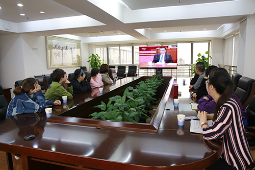 圖為行政團(tuán)支部成員觀看大會(huì)直播