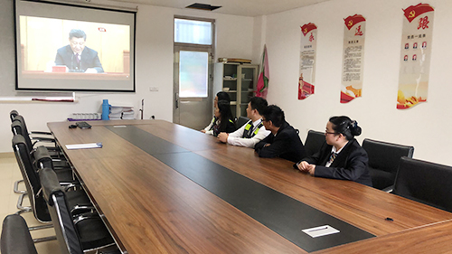 圖為臺(tái)州收費(fèi)所團(tuán)支部成員觀看大會(huì)直播