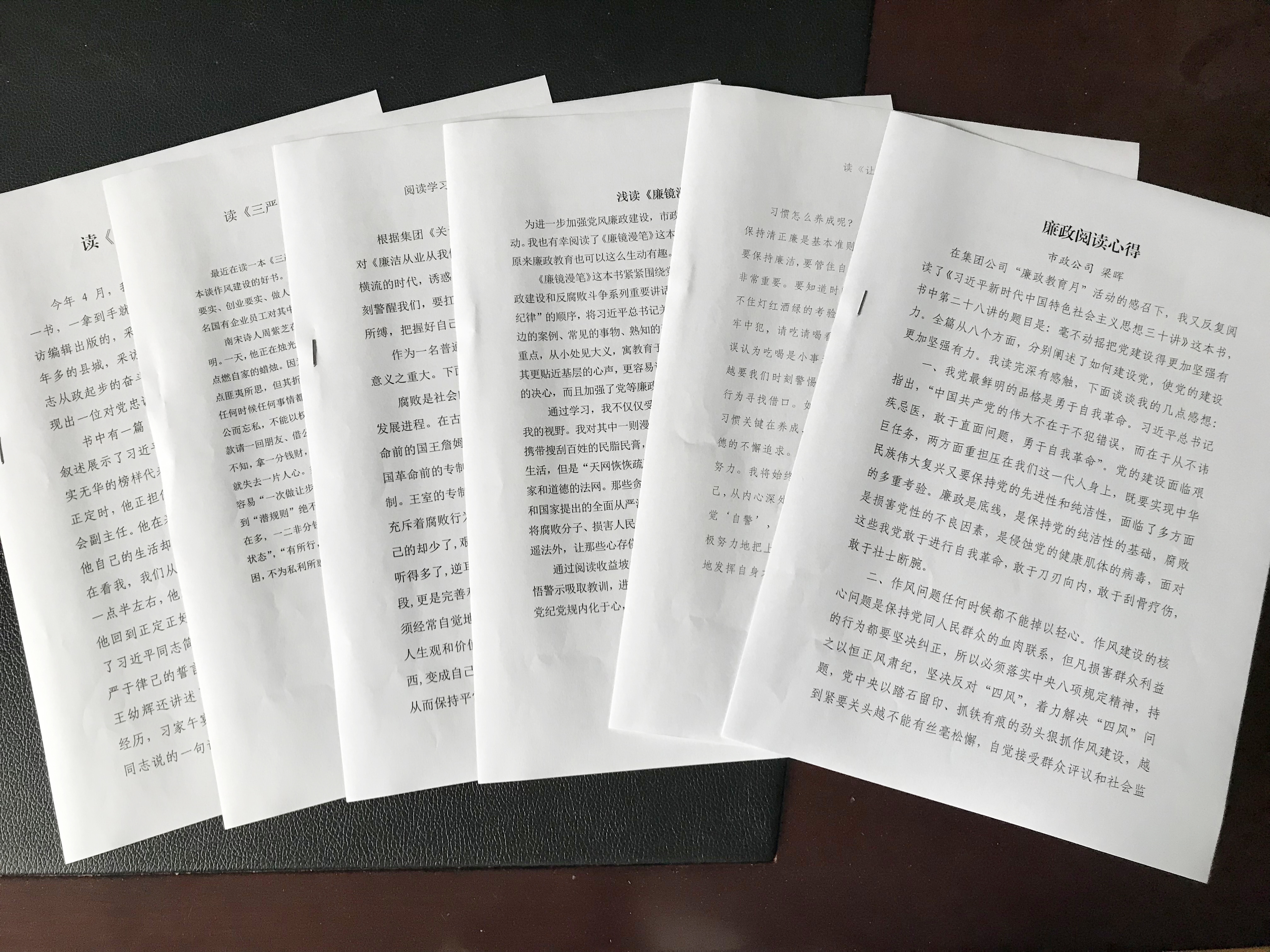 圖為集中學習現(xiàn)場 每月月度例會上,市政公司組織員工有針對性地學習集團和市政公司的制度與流程。該公司制作了一本制度匯編,并分發(fā)到人手一本,要求員工認真學習,熟悉公司辦事流程和規(guī)章,工作中做到照章辦事,增強員工的制度觀念。 5月月初,市政公司組織開展讀書思廉活動,要求每位員工讀一本勤政廉政書籍,并撰寫一篇讀書心得。從一篇篇心得體會文章中,看到有從歷史廉政小故事切入的,也有從習近平總書記的新時代中國特色社會主義思想和十九大報告中領悟道理的,字字流露了真情實感,句句體現(xiàn)出真切感悟,真正做到了學有所悟,營造了良好的學廉思廉的氛圍。